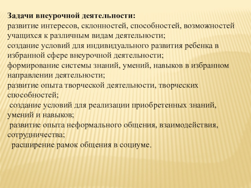 создание условий для индивидуального развития ребенка в избранной сфере внеурочной деятельности;