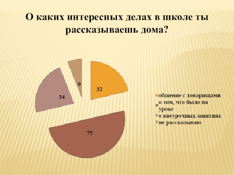 Слайд 48О каких интересных делах в школе ты рассказываешь дома?