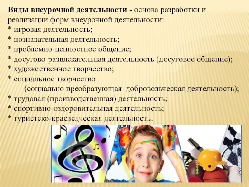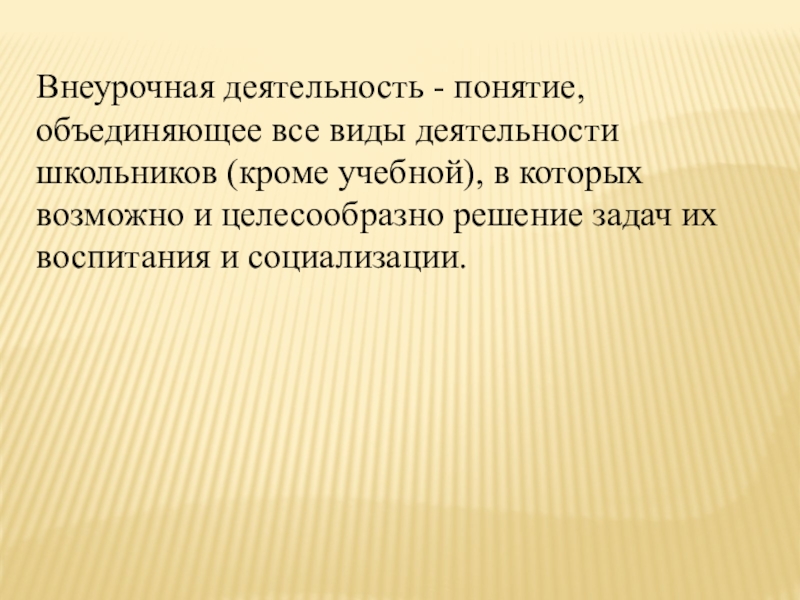 Слайд 7Внеурочная деятельность - понятие, объединяющее все виды деятельности школьников (кроме учебной),