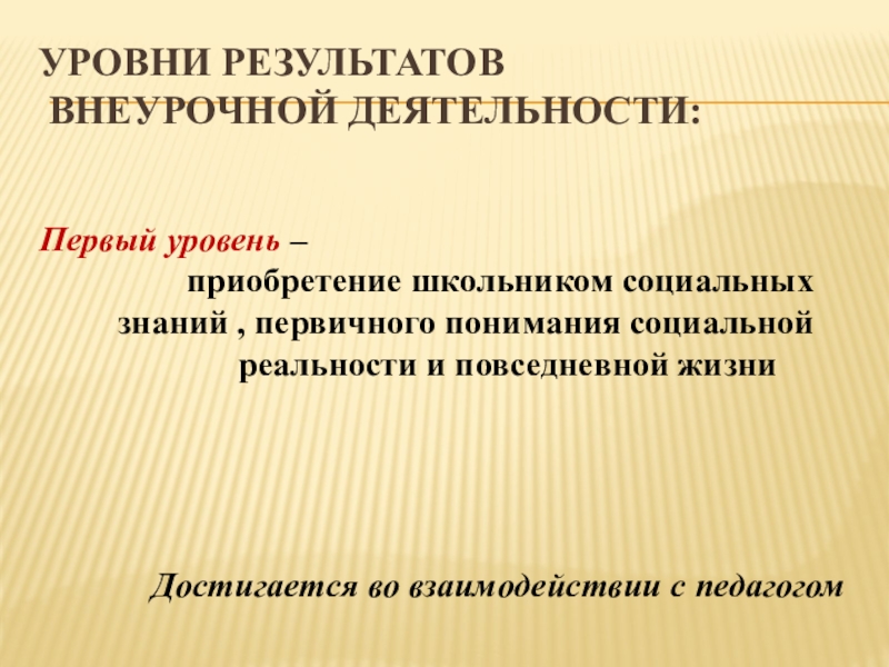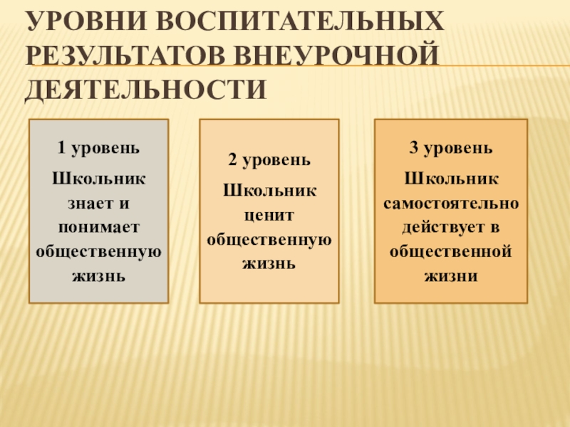подбирать такие формы внеурочной деятельности, которые гарантируют достижение результата определенного уровня;