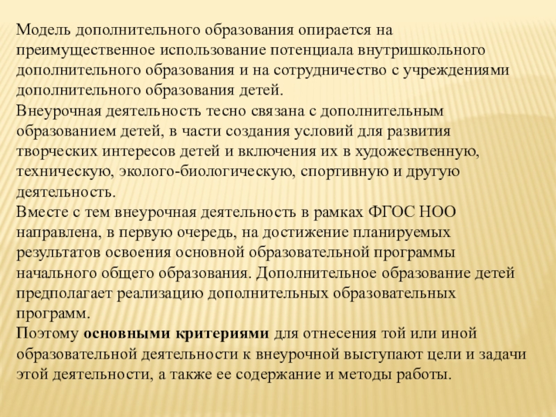 Основой для неё является реализация внеурочной деятельности преимущественно