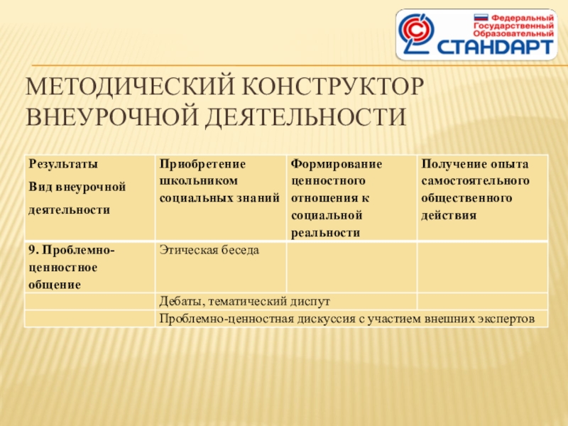 Особенности внеурочной деятельности в рамках ФГОС. Роль учителя в совершенствовании воспитательной