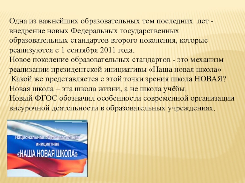 Новое поколение образовательных стандартов - это механизм реализации президентской инициативы «Наша новая школа»