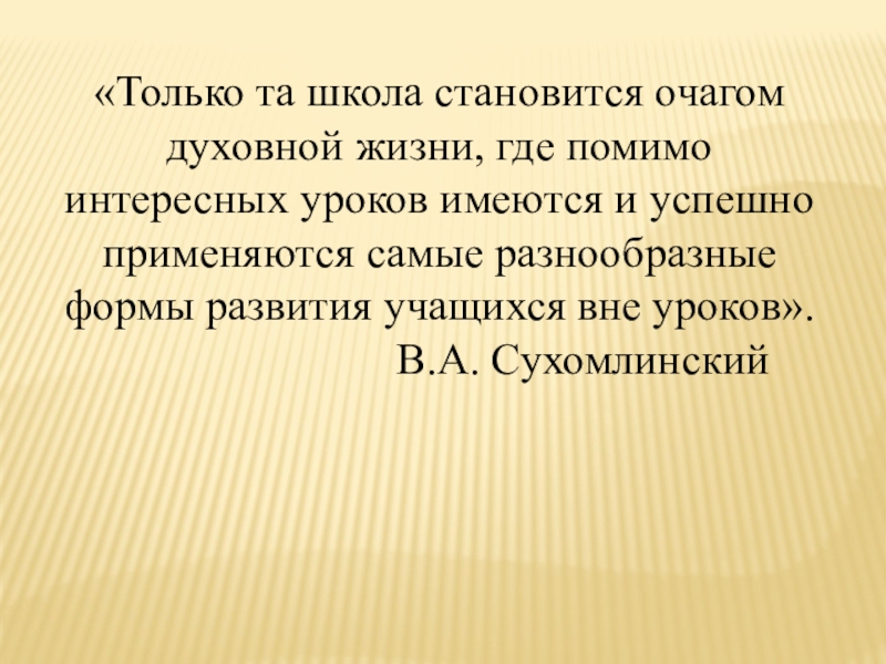 Слайд 2«Только та школа становится очагом духовной жизни, где помимо интересных уроков