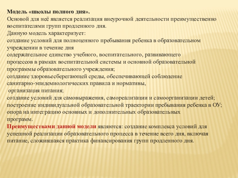 успешной реализации образовательного процесса в течение всего дня, включая питание, сложившаяся практика финансирования групп продленного дня.