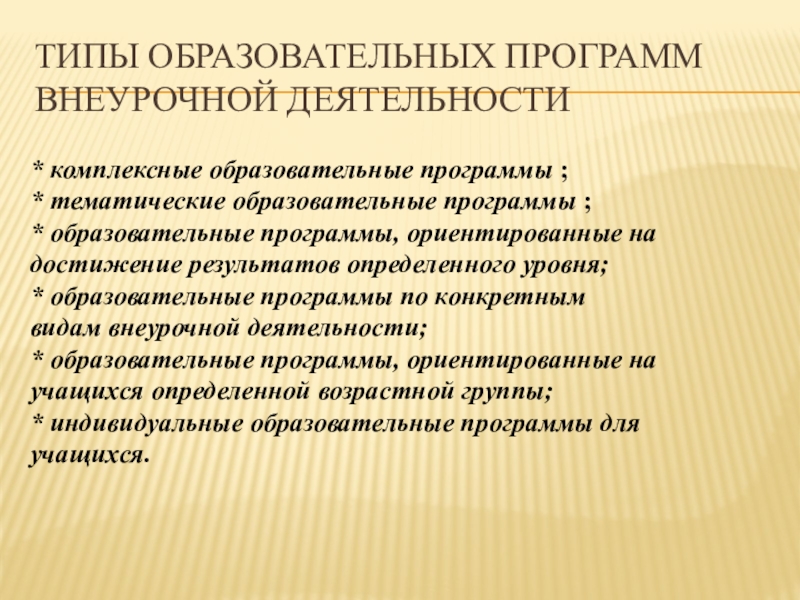 * образовательные программы по конкретным видам внеурочной деятельности;
