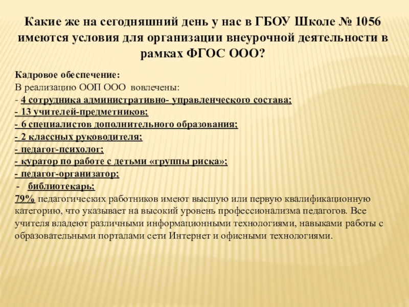 1056 имеются условия для организации внеурочной деятельности в рамках ФГОС ООО?