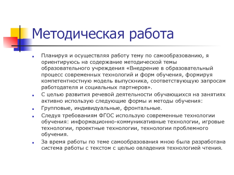 Планируя и осуществляя работу тему по самообразованию, я ориентируюсь на