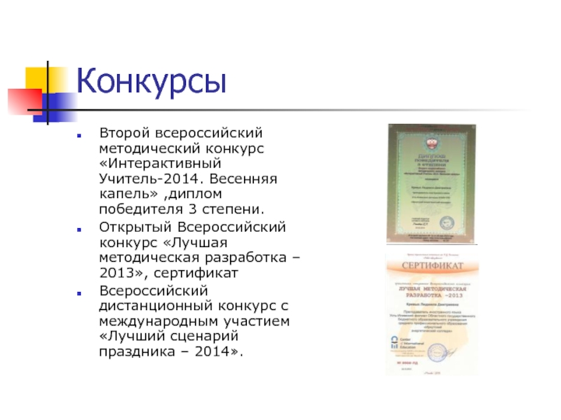 Открытый Всероссийский конкурс «Лучшая методическая разработка – 2013», сертификат