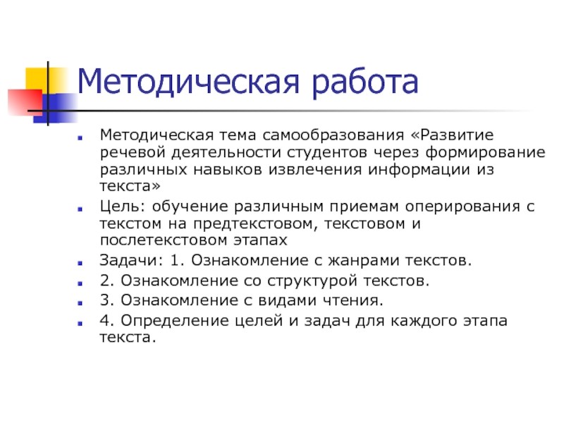 Методическая тема самообразования «Развитие речевой деятельности студентов через формирование различных