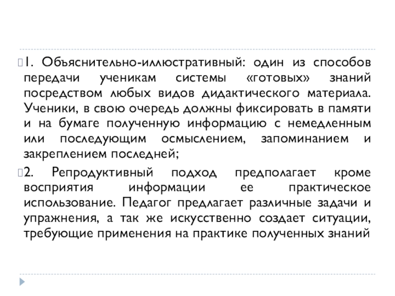 Слайд 231. Объяснительно-иллюстративный: один из способов передачи ученикам системы «готовых» знаний посредством