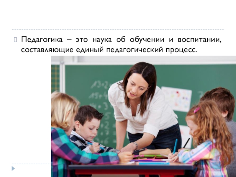 Слайд 5Педагогика – это наука об обучении и воспитании, составляющие единый педагогический