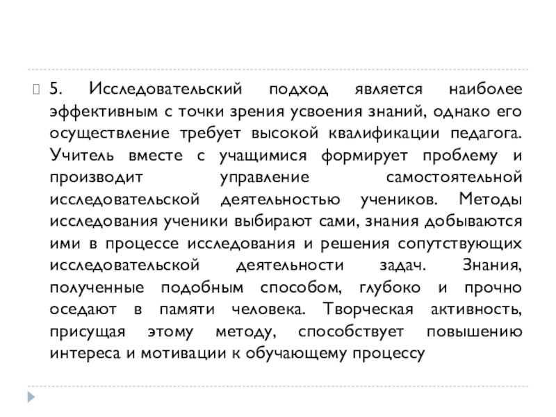 Слайд 265. Исследовательский подход является наиболее эффективным с точки зрения усвоения знаний,