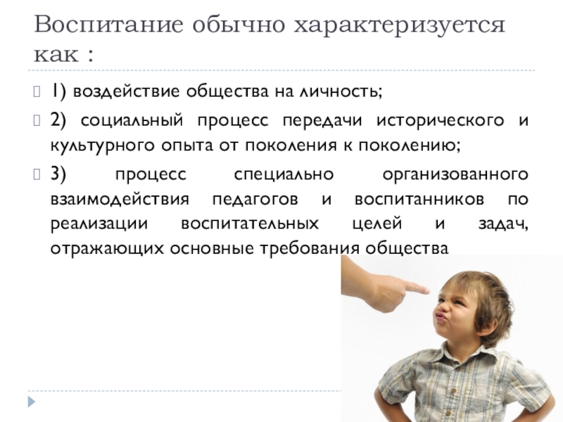 3) процесс специально организованного взаимодействия педагогов и воспитанников по реализации воспитательных целей и задач, отражающих основные требования общества