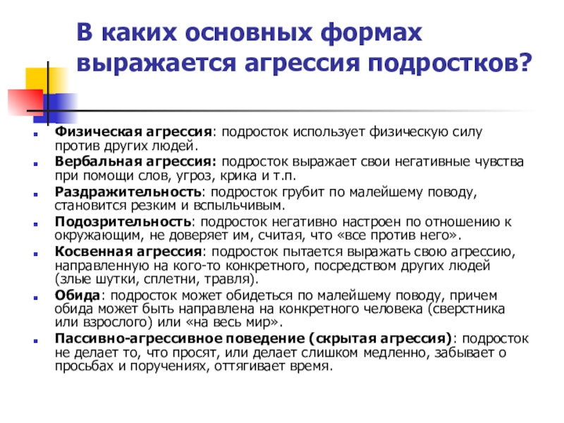 Слайд 5В каких основных формах выражается агрессия подростков?