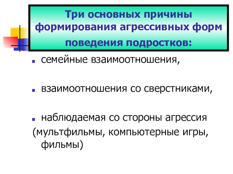Три основных причины формирования агрессивных форм поведения подростков: