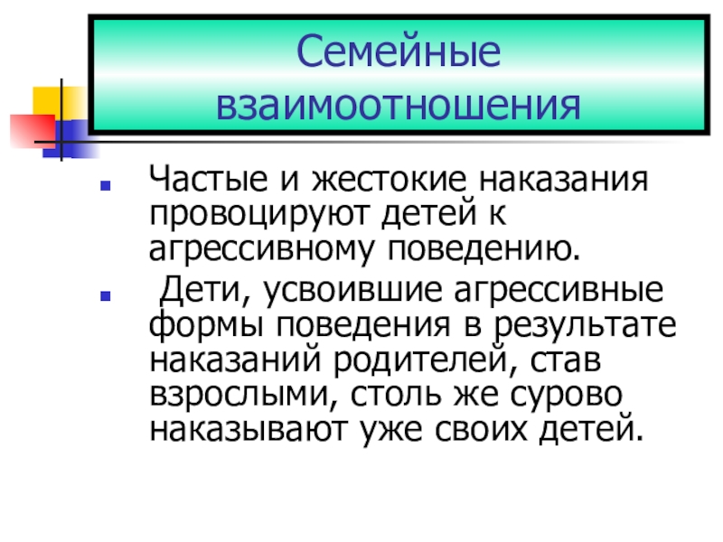 Слайд 10Частые и жестокие наказания провоцируют детей к агрессивному поведению.