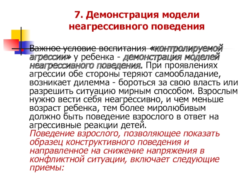 Слайд 217. Демонстрация модели неагрессивного поведения
