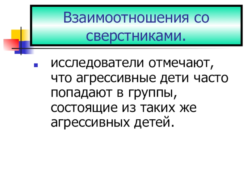 Слайд 12исследователи отмечают, что агрессивные дети часто попадают в группы, состоящие из