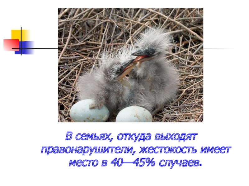 Слайд 11В семьях, откуда выходят правонарушители, жестокость имеет место в 40—45% случаев.