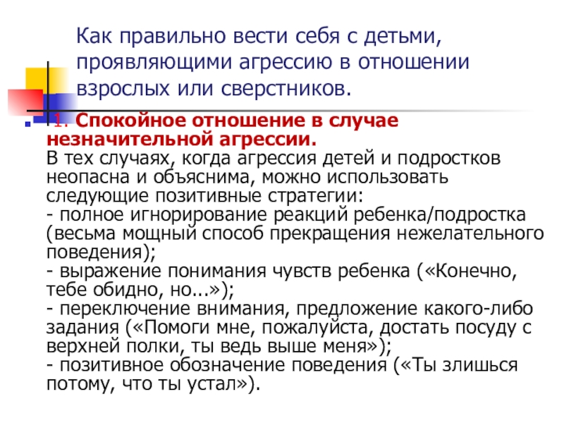 1. Спокойное отношение в случае незначительной агрессии.