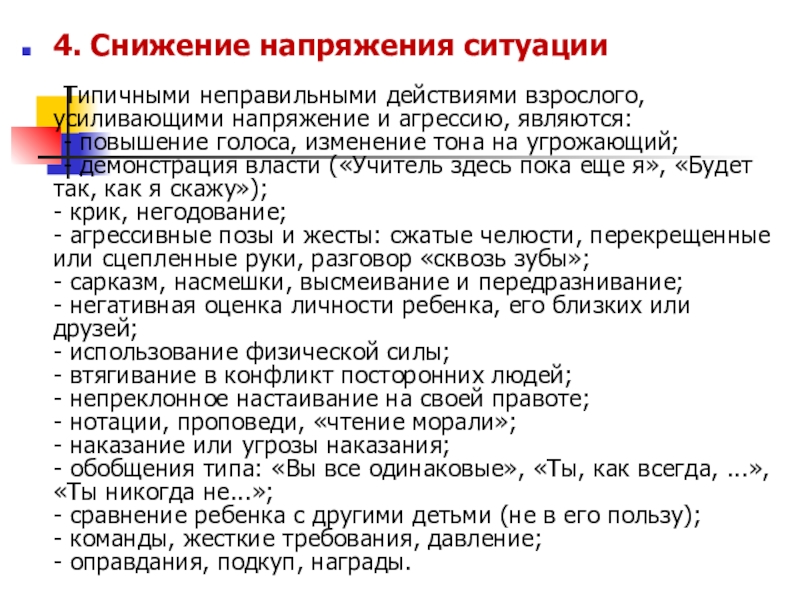 Типичными неправильными действиями взрослого, усиливающими напряжение и агрессию,