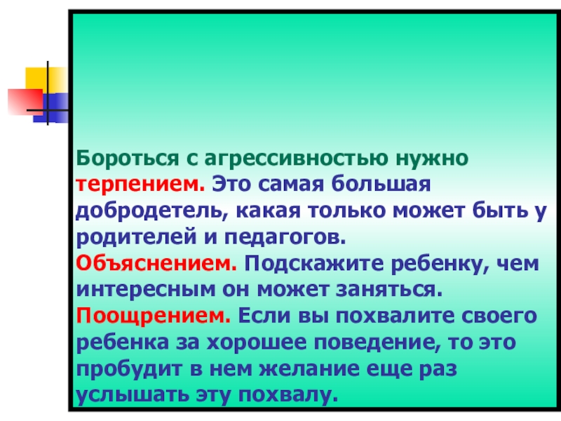 Слайд 24Бороться с агрессивностью нужно терпением. Это самая большая добродетель, какая только