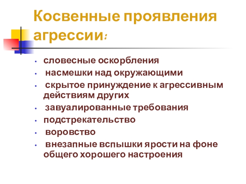 Слайд 6Косвенные проявления агрессии: