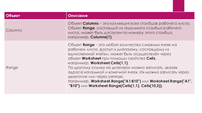 Таким образом, чтобы сослаться на диапазон A1:B10 на активном рабочем листе активной книги, можно записать просто: