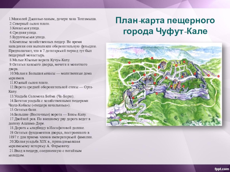 на руины оборонительных сооружений, фундаменты различных построек и, конечно, осмотреть пещеры.
