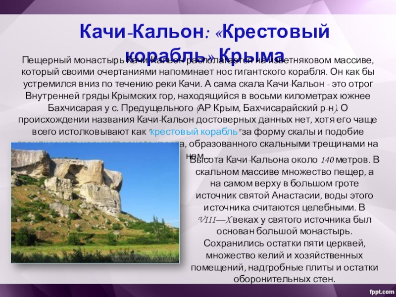 Слайд 32Качи-Кальон: «Крестовый корабль» Крыма