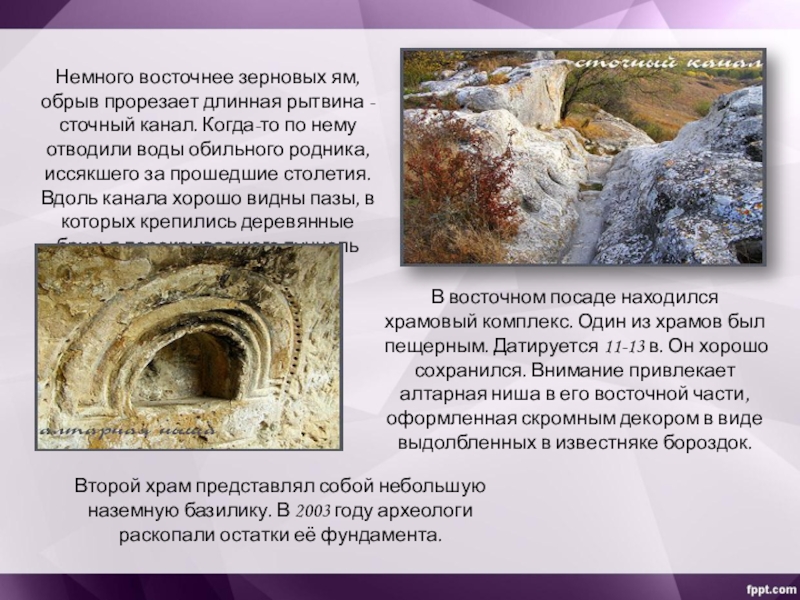 Слайд 10Проходя далее по краю обрыва, мы видим следы пещерных келий и