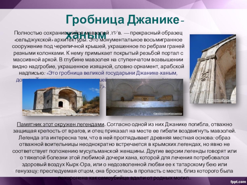 Слайд 261.Мавзолей Джанике-ханым, дочери хана Тохтамыша.
