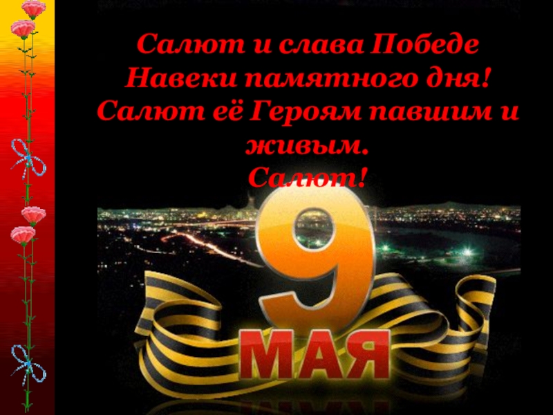 Салют и слава ПобедеНавеки памятного дня! Салют её Героям павшим и живым.Салют!