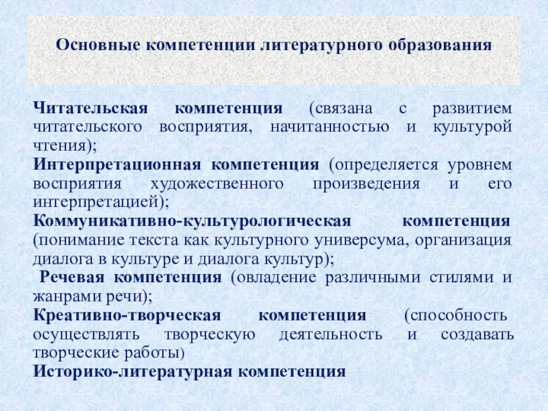 Основные компетенции литературного образования