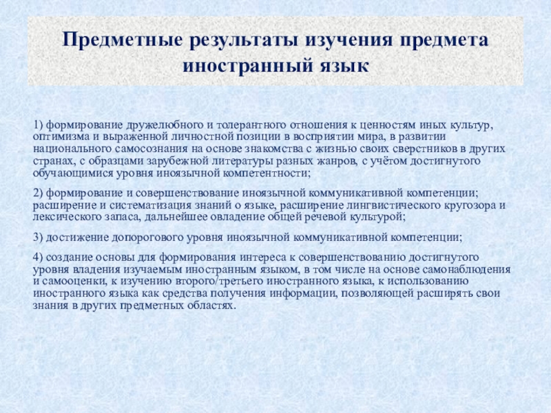 Слайд 15Предметные результаты изучения предмета иностранный язык