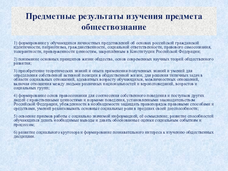 Слайд 17Предметные результаты изучения предмета обществознание