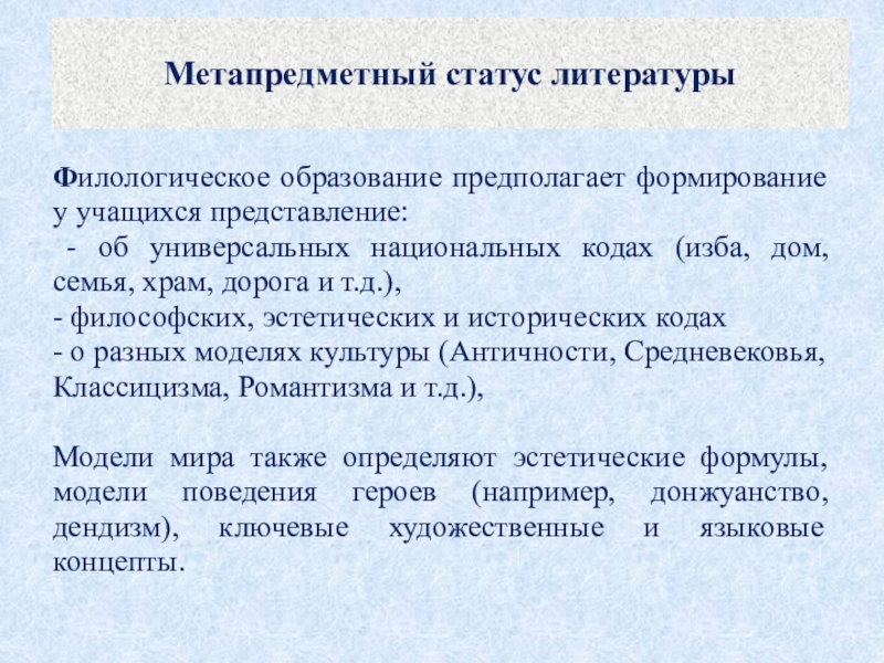 Слайд 14Метапредметный статус литературы
