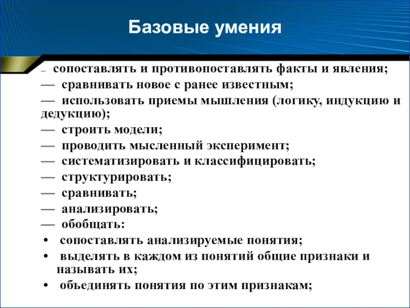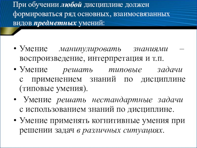 Умение манипулировать знаниями – воспроизведение, интерпретация и т.п.