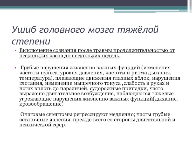 Слайд 18Ушиб головного мозга тяжёлой степени