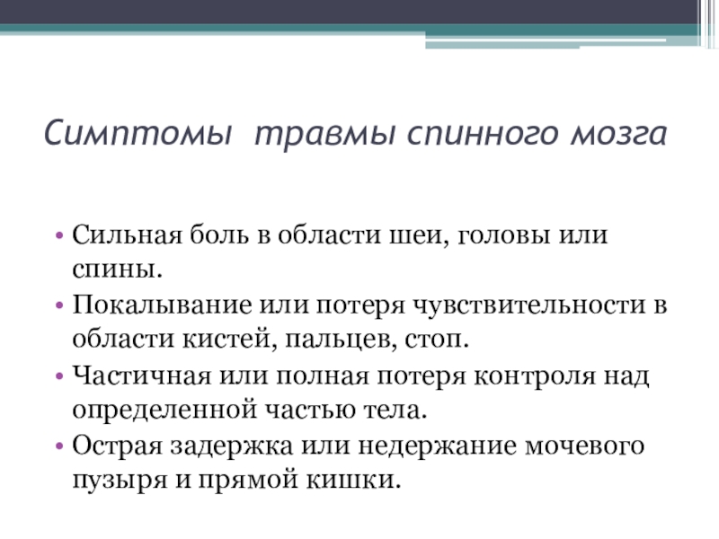 Слайд 45Симптомы травмы спинного мозга