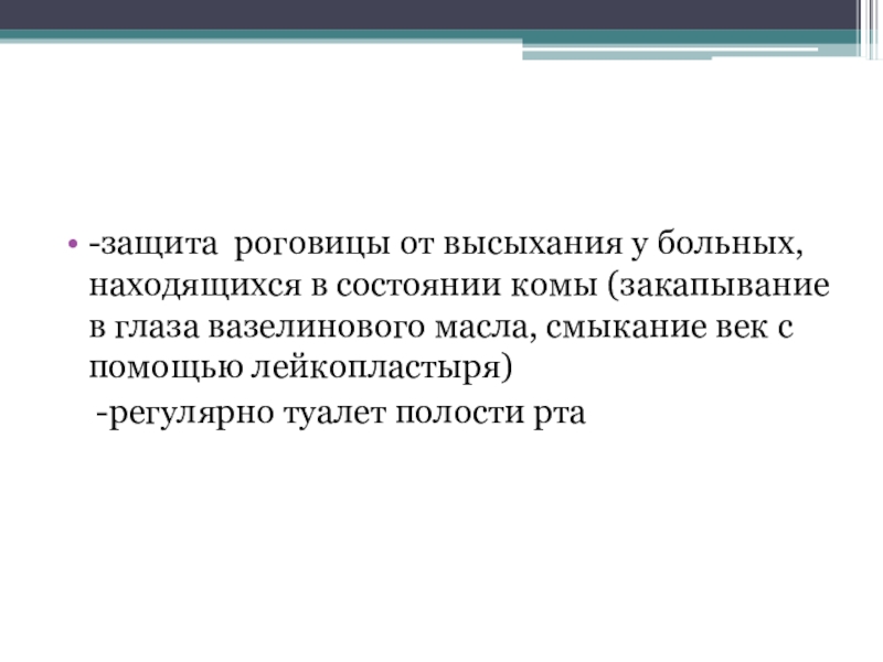 -защита роговицы от высыхания у больных, находящихся в состоянии комы (закапывание