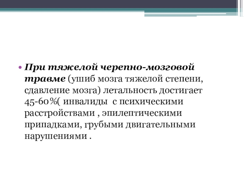 При тяжелой черепно-мозговой травме (ушиб мозга тяжелой степени, сдавление мозга) летальность