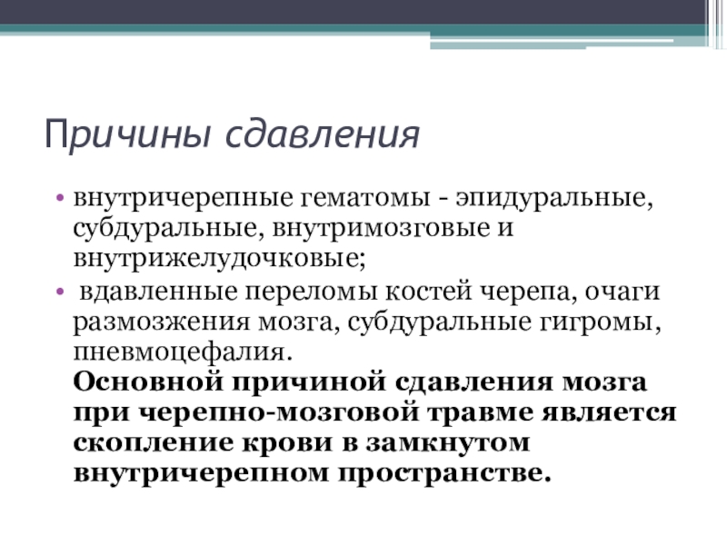 Слайд 26Причины сдавления