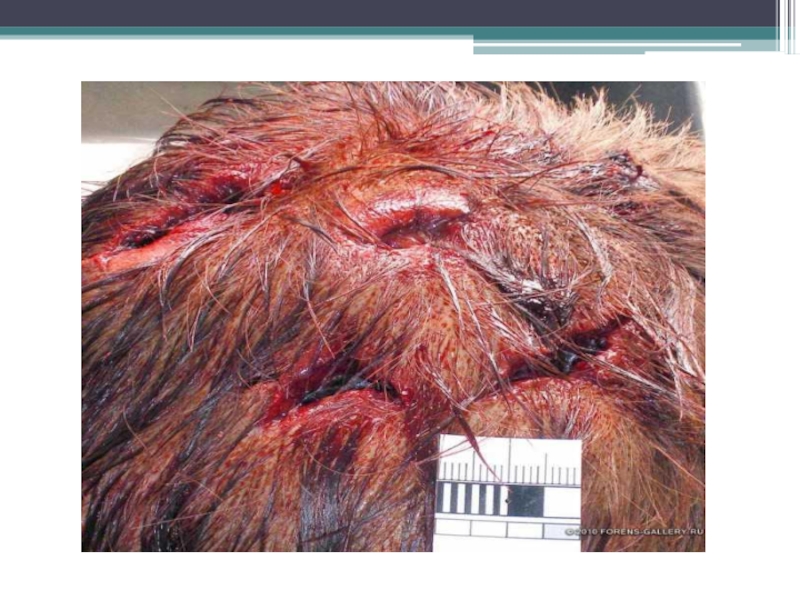 и порезы черепа.