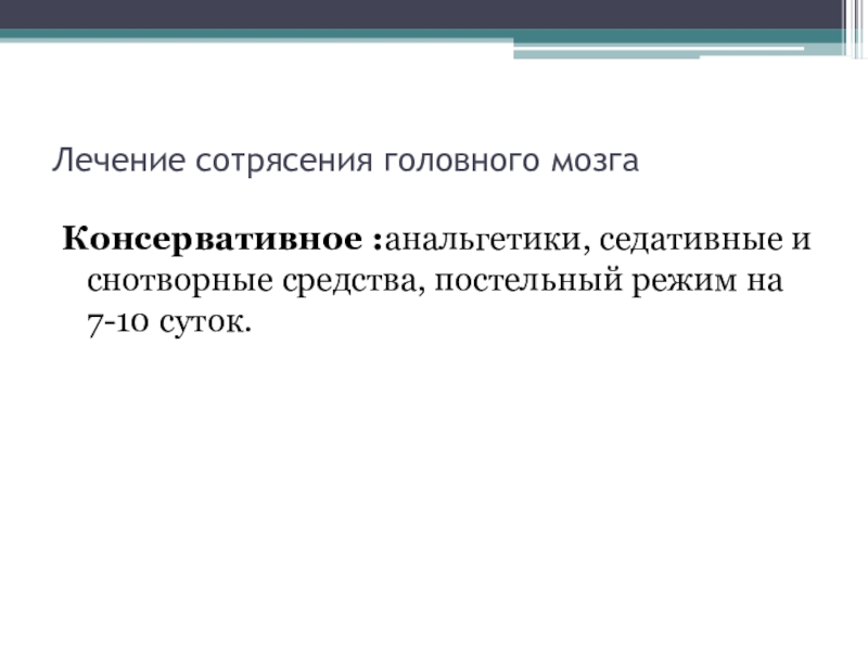 Слайд 33Лечение сотрясения головного мозга
