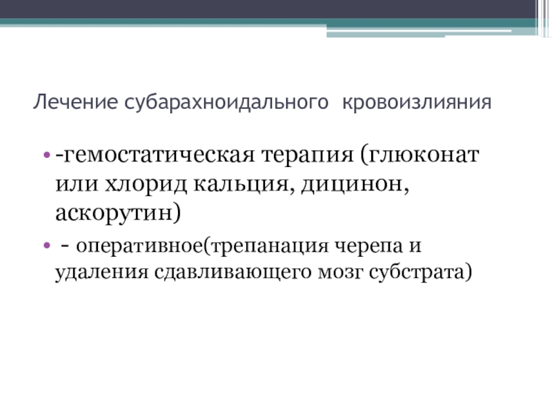 Слайд 35Лечение субарахноидального кровоизлияния
