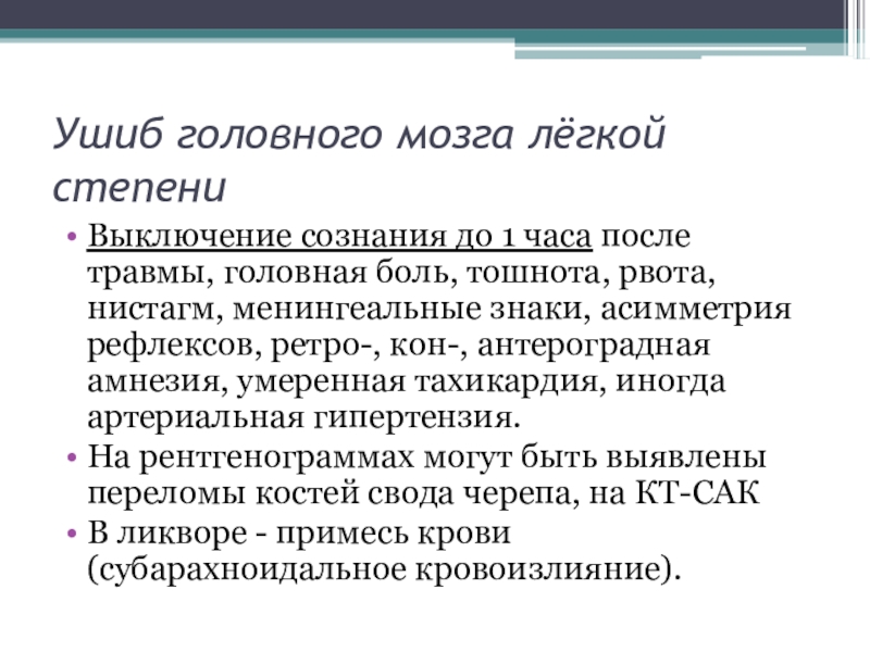 Слайд 15Ушиб головного мозга лёгкой степени