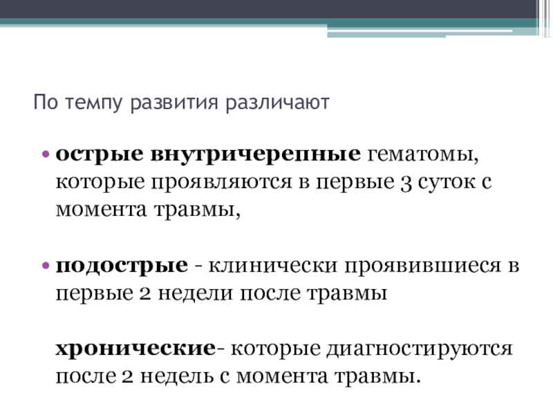 острые внутричерепные гематомы, которые проявляются в первые 3