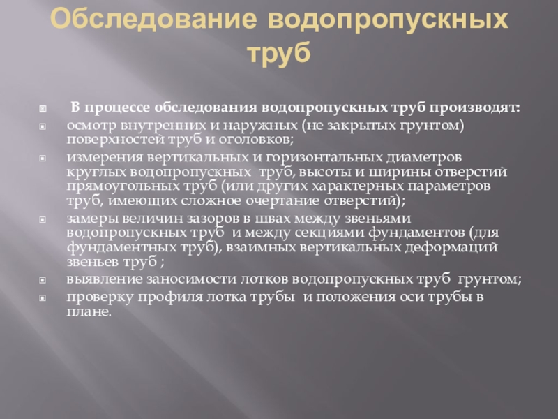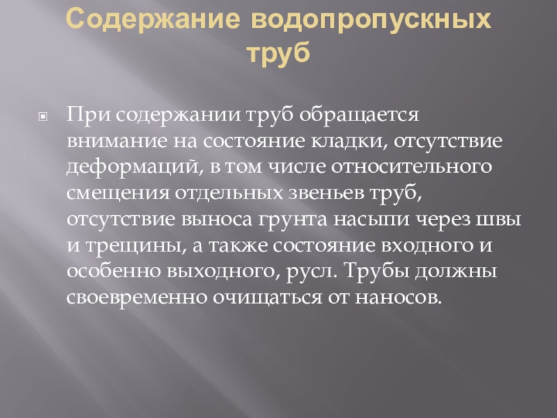 При содержании труб обращается внимание на состояние кладки, отсутствие деформаций, в